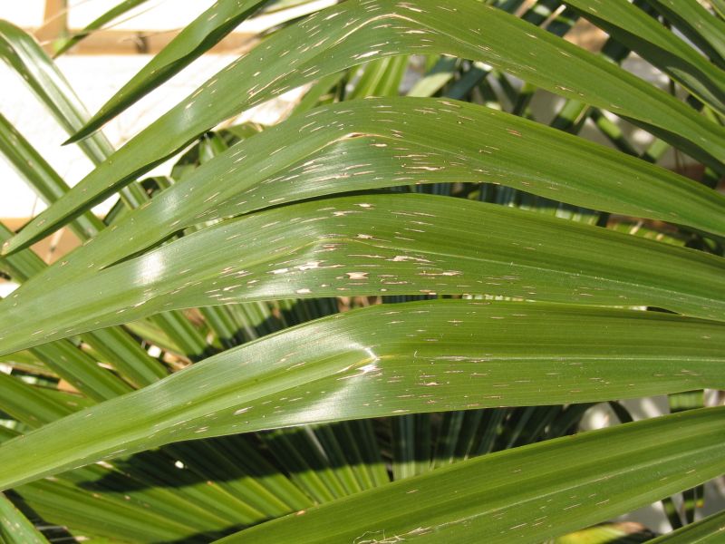 Mina väderkvarnspalmer (Trachycarpus fortunei och T. wagnerianus) har klarat sig bra. Bladen var insvepta i ett par veckor i februari även som det nog egentligen inte behövdes. Tyvärr var de oskyddade när det var som kallast i slutet av januari och det uppstod då små skador på en del blad. Annars har det största problemet varit alla stormarna.